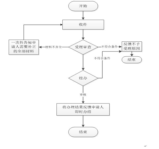 环节名称:受理 ;办理人:衡银亮;办理时限:0天;审查标准:1、核对申请人是否符合申请条件;2、依据办事指南中材料清单逐一核对是否齐全;3、核对每个材料是否涵盖材料要求中涉及的内容和要素。;办理结果:1、能当场受理或通过当场补正达到受理条件的,直接进入受理步骤;2、根据一次性告知通知书内容进行补正后达到受理条件的,出具决定受理通知书。; 环节名称:审核 ;办理人:魏涛;办理时限:0.5天;审查标准:材料齐全,符合规定;办理结果:提出初步意见,转入决定步骤。; 环节名称:决定 ;办理人:耿夕林;办理时限:0.5天;审查标准:复核审查步骤阶段提出的初步意见。;办理结果:1、申请符合规定的,准予行政许可。2、申请不符合规定的,不准予行政许可。; 环节名称:送达 ;办理人:霍靓;办理时限:0天;审查标准:1、准予行政许可的颁发《准予行政许可决定书》2、不予行政许可的颁发《不予行政许可决定书》;办理结果:窗口领取、邮寄送达;