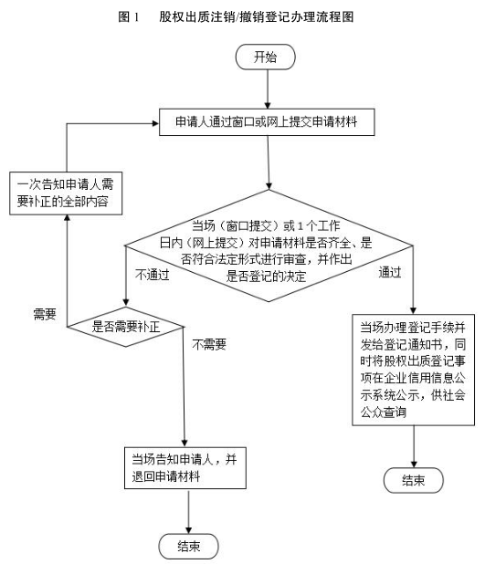 《工商行政管理机关股权出质登记办法》第十四条:登记机关对登记申请应当当场办理登记手续并发给登记通知书。通知书加盖登记机关的股权出质登记专用章。 对于不属于股权出质登记范围或者不属于本机关登记管辖范围以及不符合本办法规定的,登记机关应当当场告知申请人,并退回申请材料。