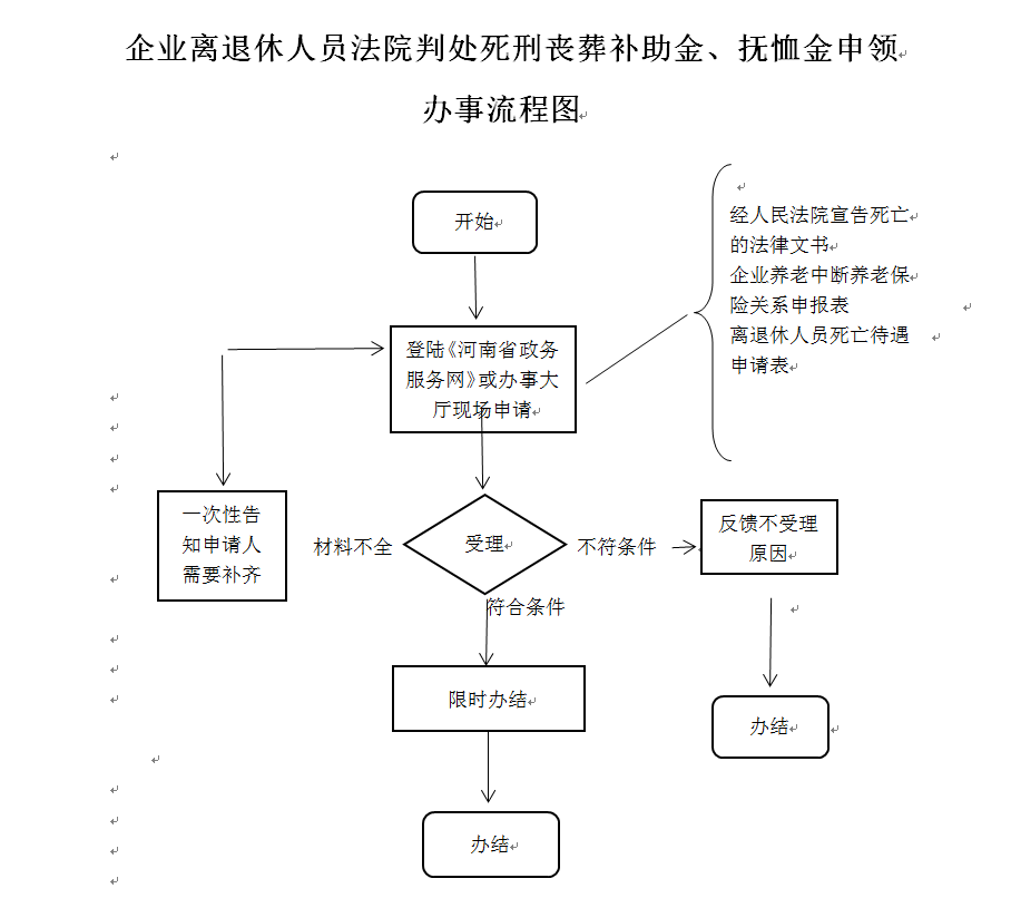 | 事项名称 | 企业离退休人员法院宣告死亡丧葬补助金、抚恤金申领 | ||
