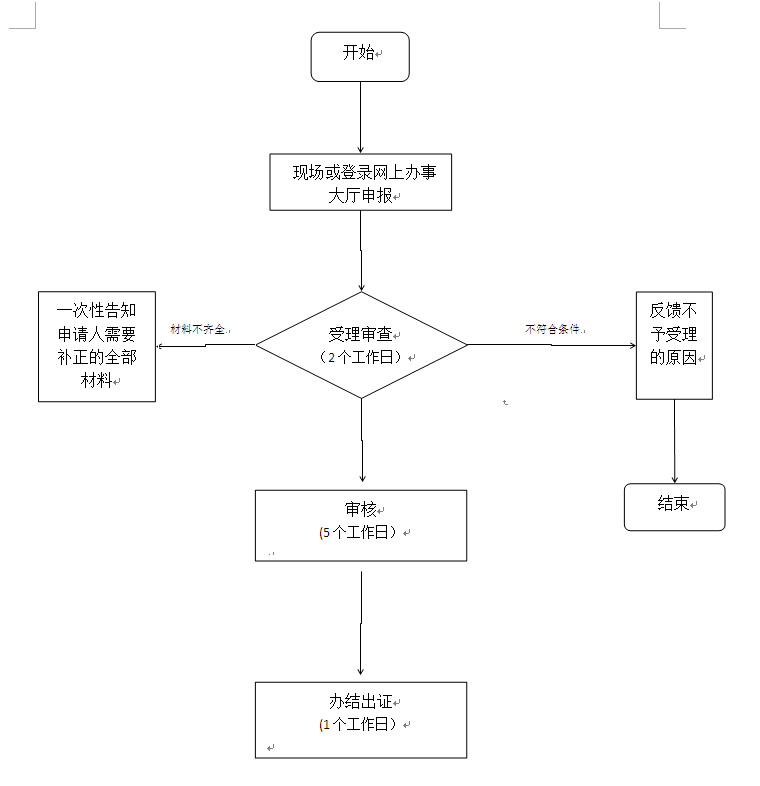环节名称:收件 ;办理人:段亚平;办理时限:立即办理;审查标准:资料齐全,同意收件;资料不齐全,无法收件。;办理结果:资料齐全,同意收件;资料不齐全,无法收件。; 环节名称:受理 ;办理人:段亚平;办理时限:立即办理;审查标准:对申请材料进行初步审核。经审核,申请材料齐全、符合法定形式的,决定予以受理。对申请材料不齐全或者不符合法定形式的,应当当场告知申请人需要补正的全部内容并即时决定不予受理,并告知申请人。;办理结果:1. 材料齐全符合法定形式的出具《受理通知书》; 2.材料不齐全或不符合法定形式的出具《不予受理通知书》。; 环节名称:审核 ;办理人:陈柏仰;办理时限:立即办理;审查标准:提交材料是否齐全、是否符合法定形式;材料需要核实的,核实相关材料。;办理结果:对于审核通过的,作出许可或备案决定,送达准予许可或备案决定;对于审核不通过的,作出不予行政许可或备案的决定,《不予许可决定书》或《不予备案决定书》。; 环节名称:决定 ;办理人:李志鹏;办理时限:立即办理;审查标准:根据审核情况,作出准予登记或不予行政许可的决定。;办理结果:1.做出准予许可或备案决定的,送达相关文书; 2.做出不予行政许可或备案决定的,送达《不予许可决定书》或《不予备案决定书》。; 环节名称:送达 ;办理人:段亚平;办理时限:立即办理;审查标准:根据申请人选择的送达方式送达结果文件。;办理结果:实施机关作出决定当日应通知申请人,及时向申请人颁发、送达审批服务事项办理结果。;